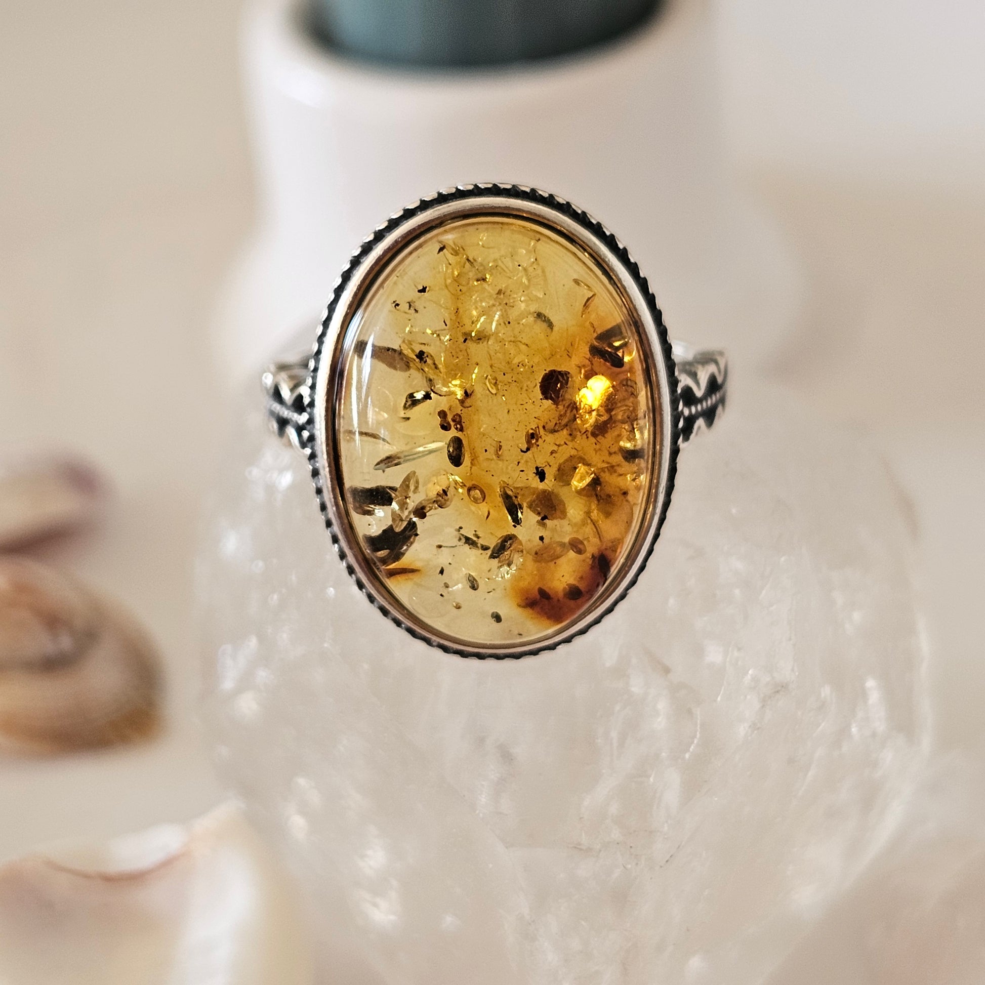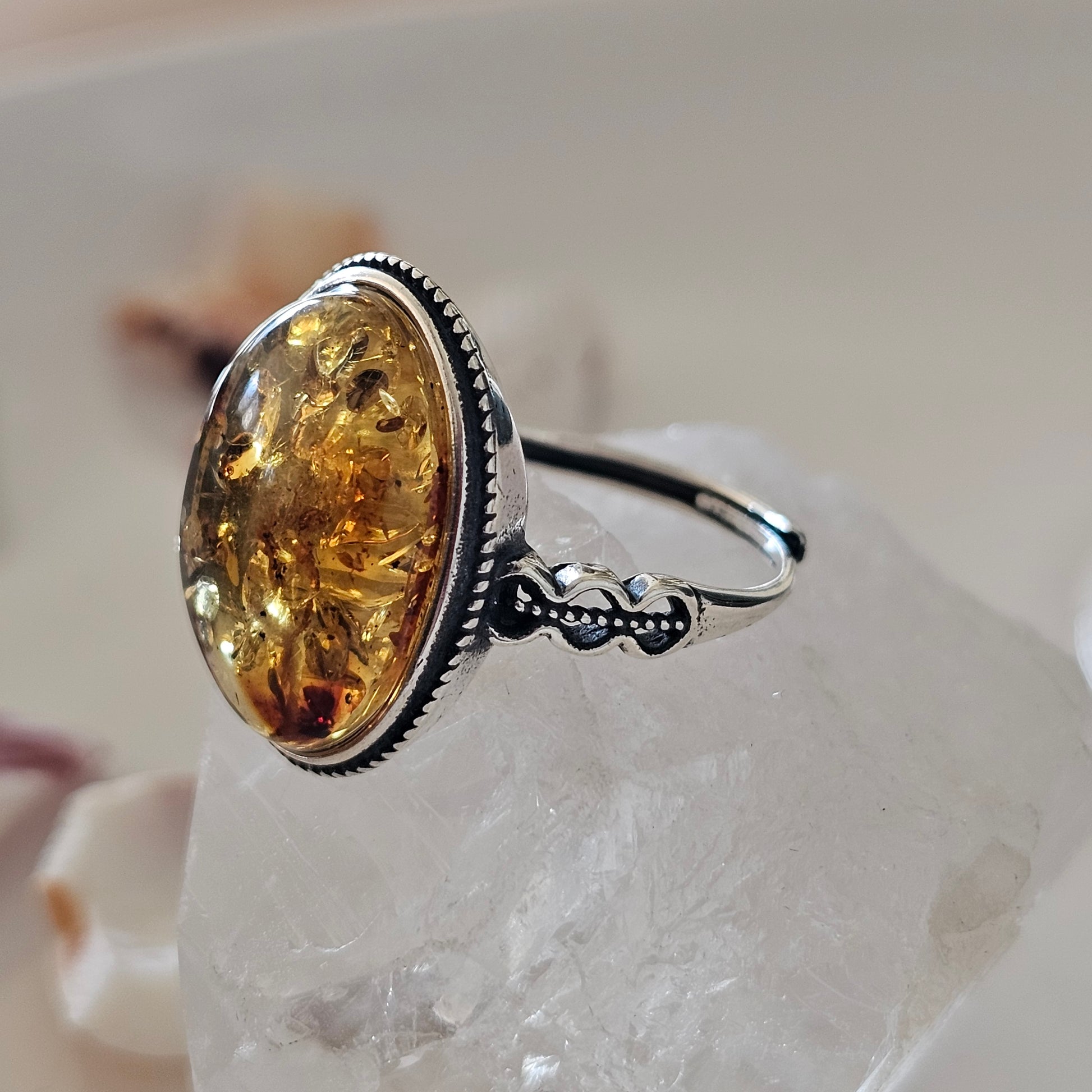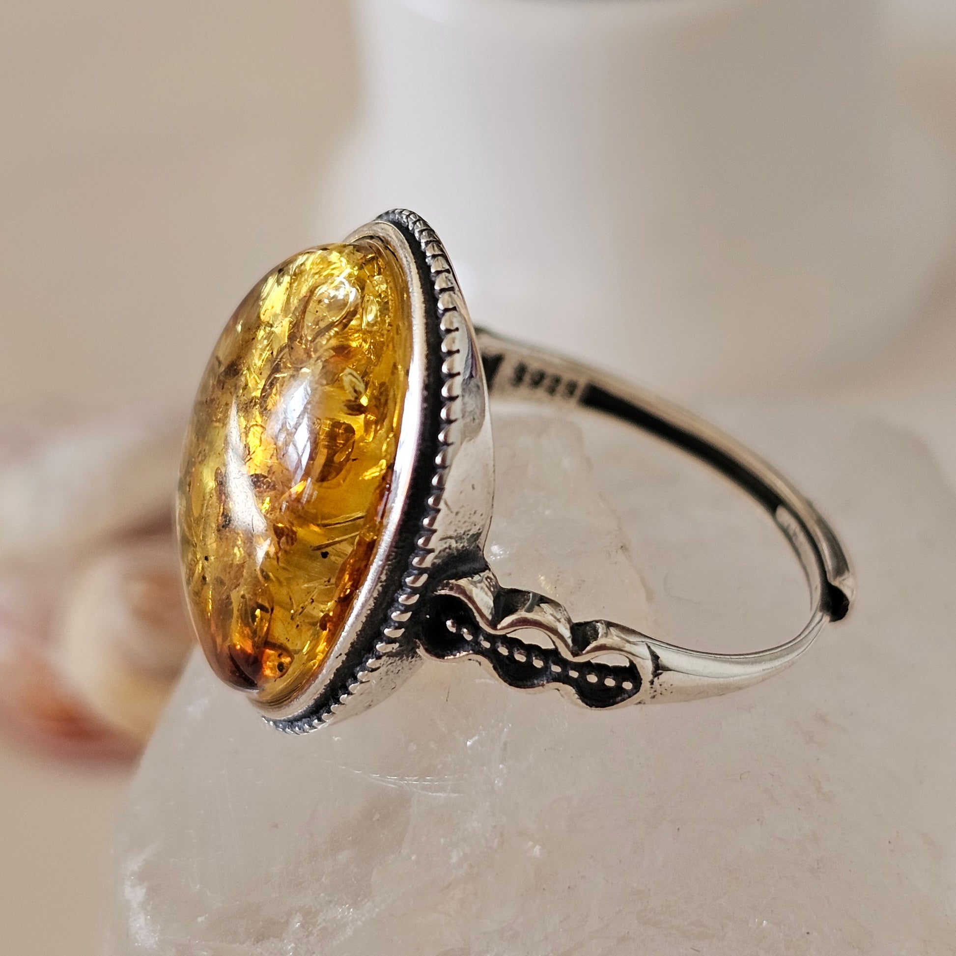 Sterling Silver Amber Ring- Style 05